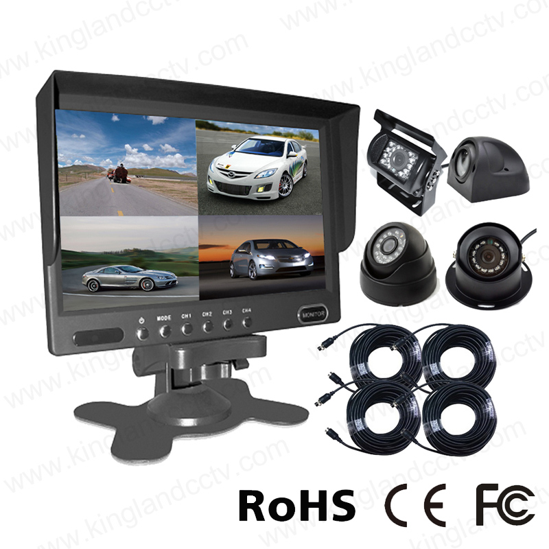 4CH 7 inch Car Rear View System with Quad Monitor (1 quad monitor + 4 cameras)